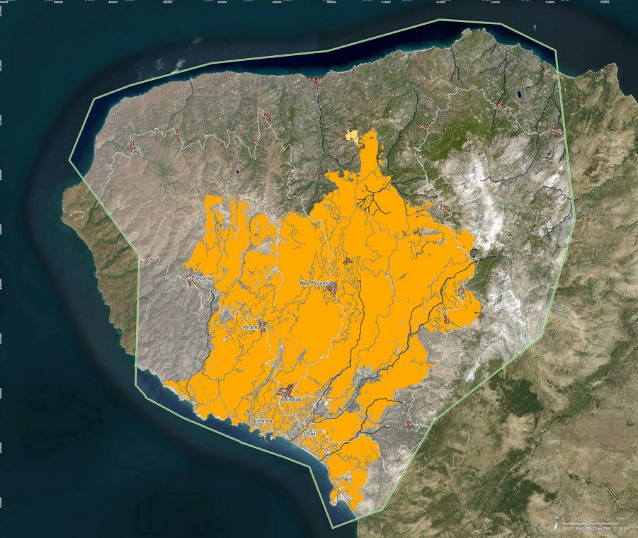 Ο χάρτης της καταστροφής στη βόρεια Χίο: Πάνω από 69.000 στρέμματα καμένα σύμφωνα με το Αστεροσκοπείο Αθηνών