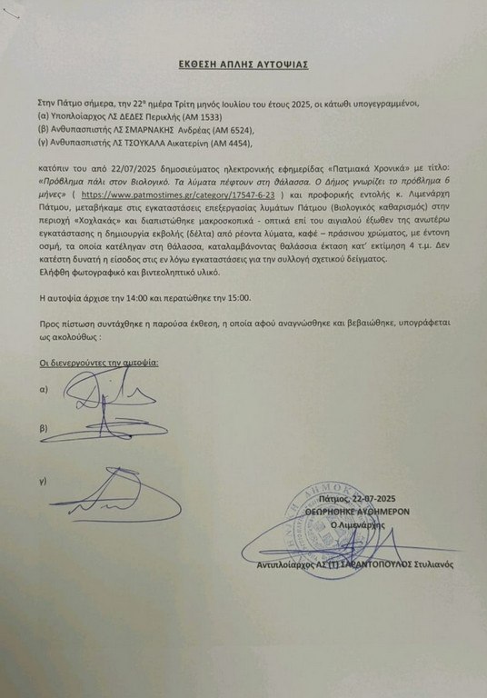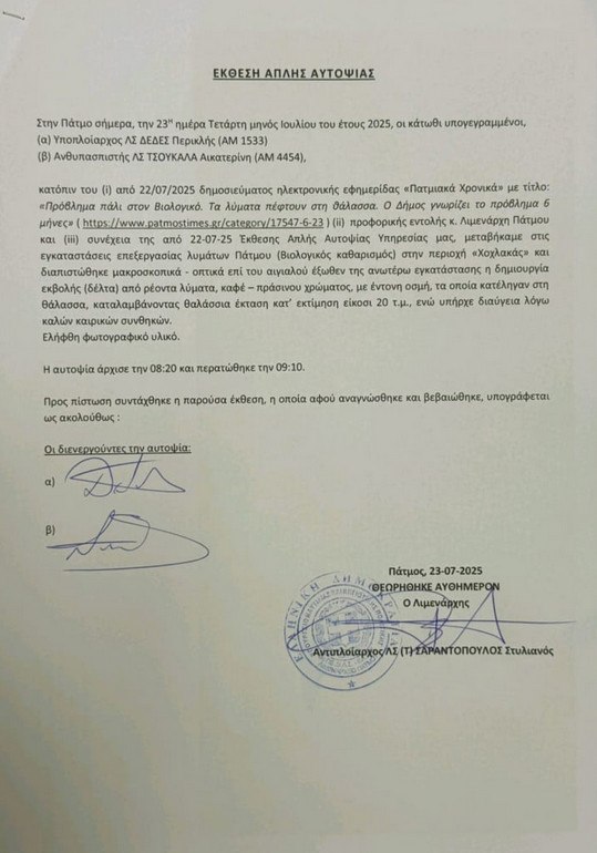 Πάτμος: Οι Εκθέσεις αυτοψίας του Λιμενικού για τα λύματα - Αναλαμβάνει ο εισαγγελέας