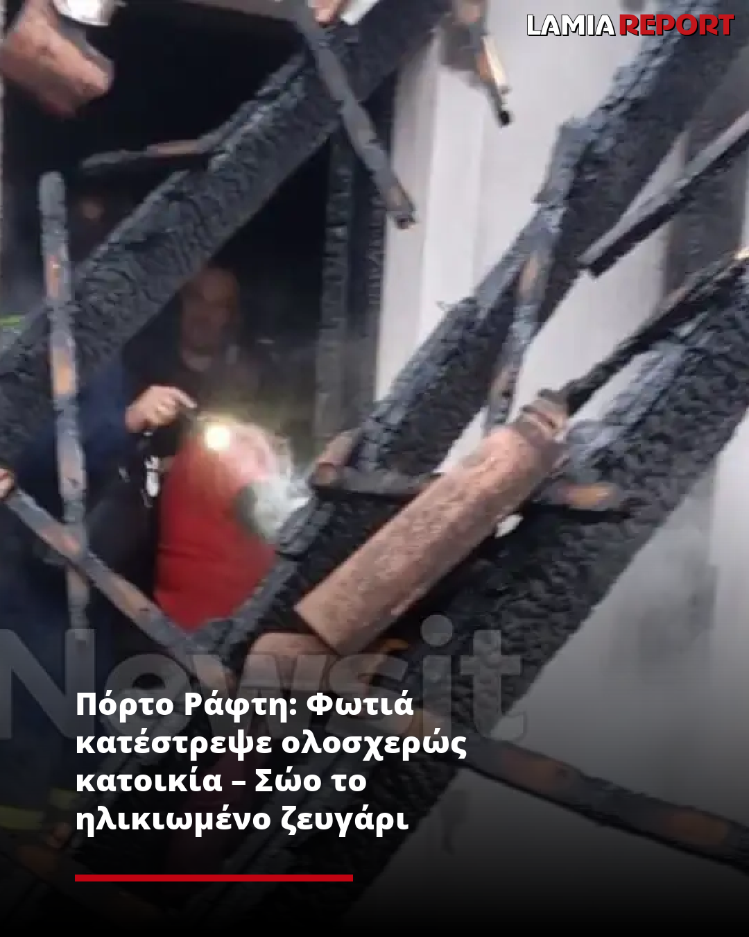 Το ηλικιωμένο ζευγάρι κατάφερε να βγει από το φλεγόμενο οίκημα που καταστράφηκε ολοσχερώς, όπως μαρτυρούν οι φωτογραφίες που εξασφάλισε το newsit.gr.