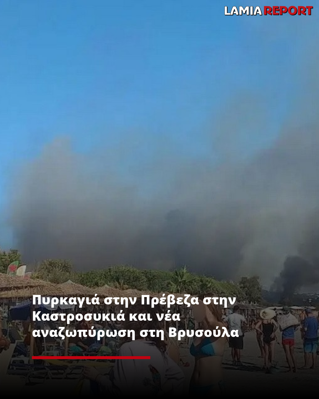 Πυρκαγιά ξέσπασε το απόγευμα της Κυριακής (10.08.2025) στην Πρέβεζα, σε δύο μέτωπα. Το πρώτο μέτωπο της πυρκαγιάς εκδηλώθηκε κοντά στην παραθαλάσσια περιοχή Καστροσυκιά, ενώ υπήρξε και νέα αναζωπύρωση της χτεσινής πυρκαγιάς σε δασική έκταση στην Βρυσούλα στην Πρέβεζα.
