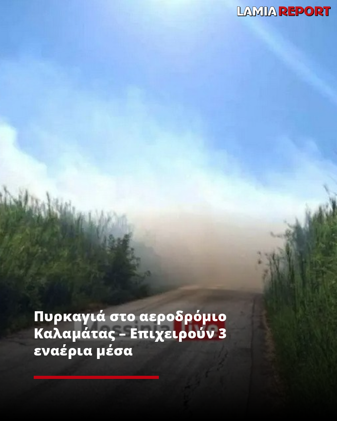 Η πυρκαγιά καίει αυτή την ώρα καλάμια έξω από τη βόρεια πύλη του αεροδρομίου Καλαμάτας, ενώ στην περιοχή πνέουν ισχυροί άνεμοι εντάσεως 6 μποφόρ.