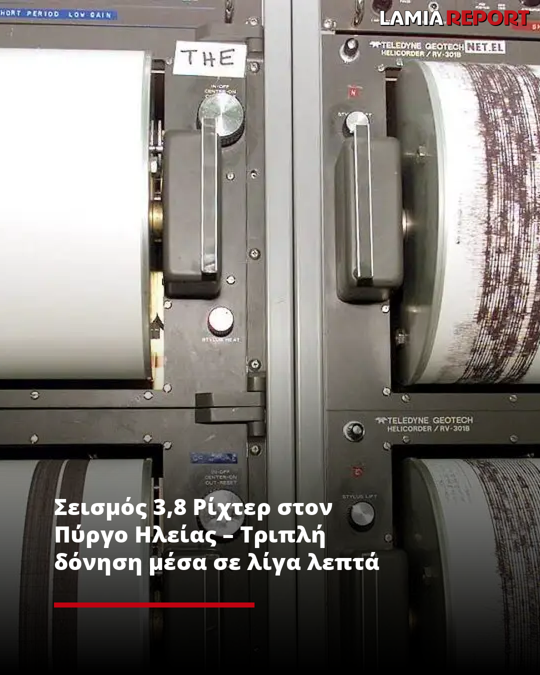 Σεισμός 3,8 Ρίχτερ στον Πύργο Ηλείας – Τριπλή δόνηση μέσα σε λίγα λεπτά