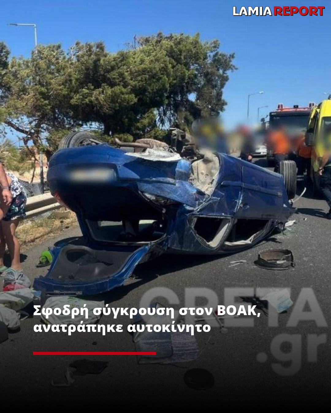 Σφοδρή σύγκρουση στον ΒΟΑΚ, ανατράπηκε αυτοκίνητο