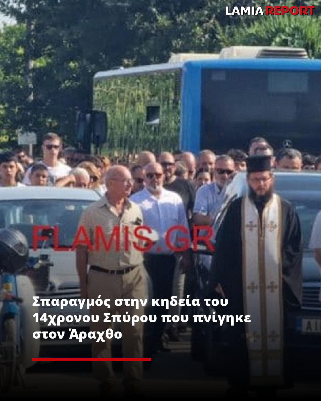 Το απόγευμα της Δευτέρας (16.06.2025) στις 18:00 ξεκίνησε η κηδεία του 14χρονου Σπύρου, ο οποίος έχασε τις αισθήσεις του την ώρα που κολυμπούσε στον Άραχθο, στο Νεοχώρι Άρτας μαζί με έναν 12χρονο ο οποίος επίσης κατέληξε.