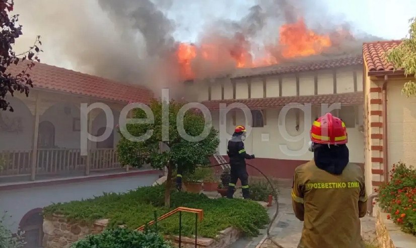 Παράλληλα καίγεται η Ιερά Μονή Αγίου Νικολάου στο Μπάλα Πατρών! Η καταστροφική πυρκαγιά καίει τη σκεπή του γυναικείου μοναστηριού με τους πυροσβέστες, τις μοναχές και εθελοντές να δίνουν τιτάνια μάχη για να αποσοβήσουν τα χειρότερα.