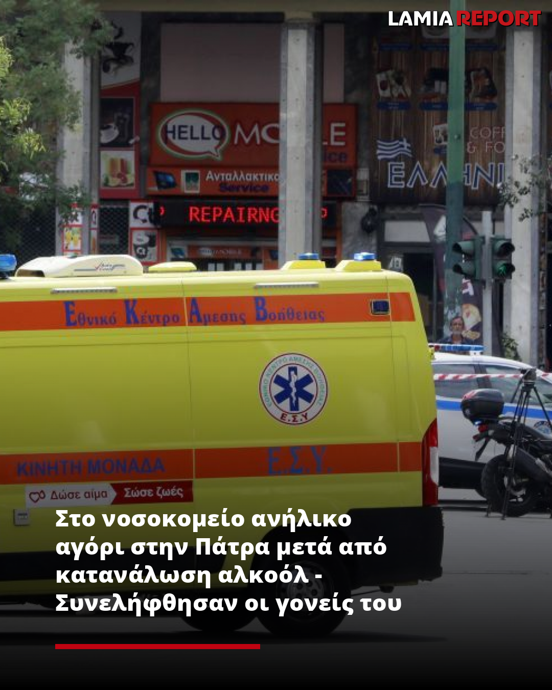 Στο Καραμανδάνειο νοσοκομείο παίδων Πατρών, διεκομίσθη ένα 16χρονο αγόρι, μετά από κατανάλωση αλκοόλ.