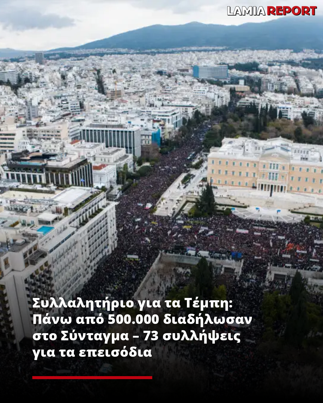 Συλλαλητήριο για τα Τέμπη: Πάνω από 500.000 διαδήλωσαν στο Σύνταγμα – 73 συλλήψεις για τα επεισόδια