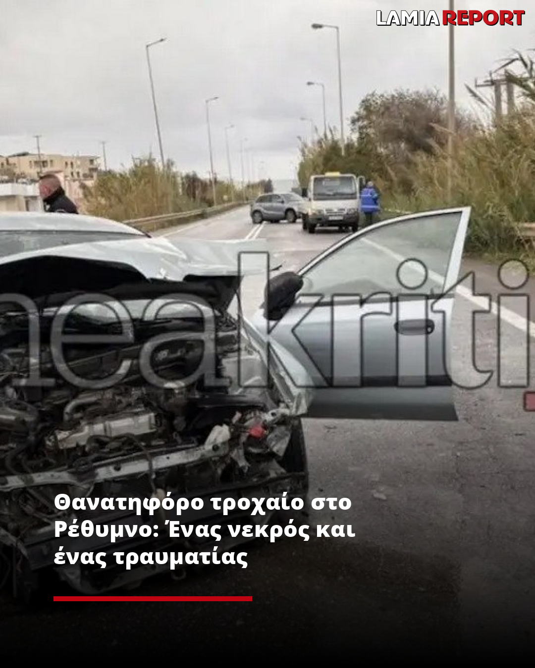 Από τη σφοδρή σύγκρουση ο οδηγός του οχήματος που φέρεται να προκάλεσε το τροχαίο έχασε τη ζωή του, ενώ άλλο ένα άτομο μεταφέρθηκε στο νοσοκομείο Ρεθύμνου. Για τα αίτια του τροχαίου δυστυχήματος διενεργείται προανάκριση.