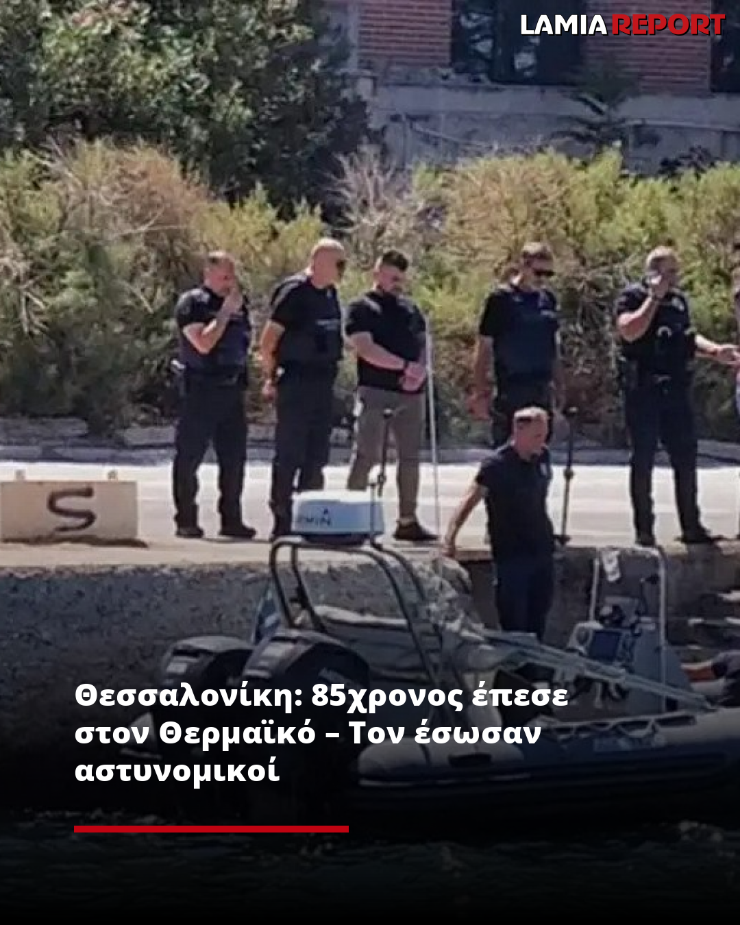 Αστυνομικοί των ΜΑΤ και της ΟΠΚΕ που βρίσκονταν κοντά στην περιοχή λόγω των μέτρων ασφαλείας που έχουν τεθεί σε ισχύ για την παρουσία του πρωθυπουργού, Κυριάκου Μητσοτάκη, βούτηξαν αμέσως στη θάλασσα και έσωσαν τον ηλικιωμένο, τον οποίο περισυνέλεξε σκάφος του Λιμενικού Σώματος.