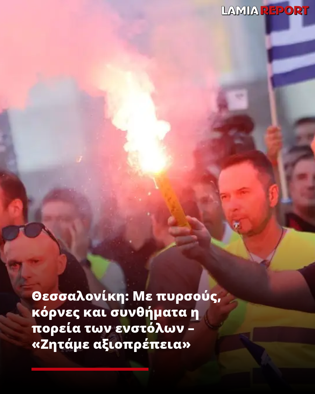 Θεσσαλονίκη: Με πυρσούς, κόρνες και συνθήματα η πορεία των ενστόλων – «Ζητάμε αξιοπρέπεια»