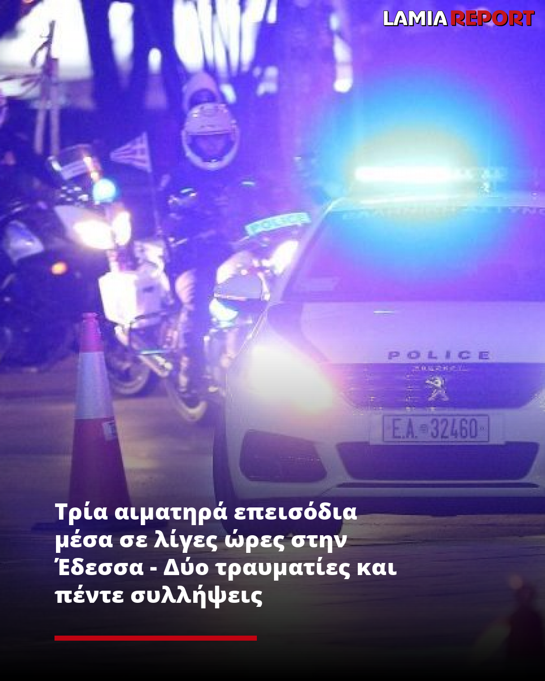 Τρία επεισόδια σημειώθηκαν μέσα σε λίγες ώρες στην Έδεσσα, με αποτέλεσμα να συλληφθούν πέντε άτομα, εκ των οποίων δύο κατέληξαν στο νοσοκομείο.