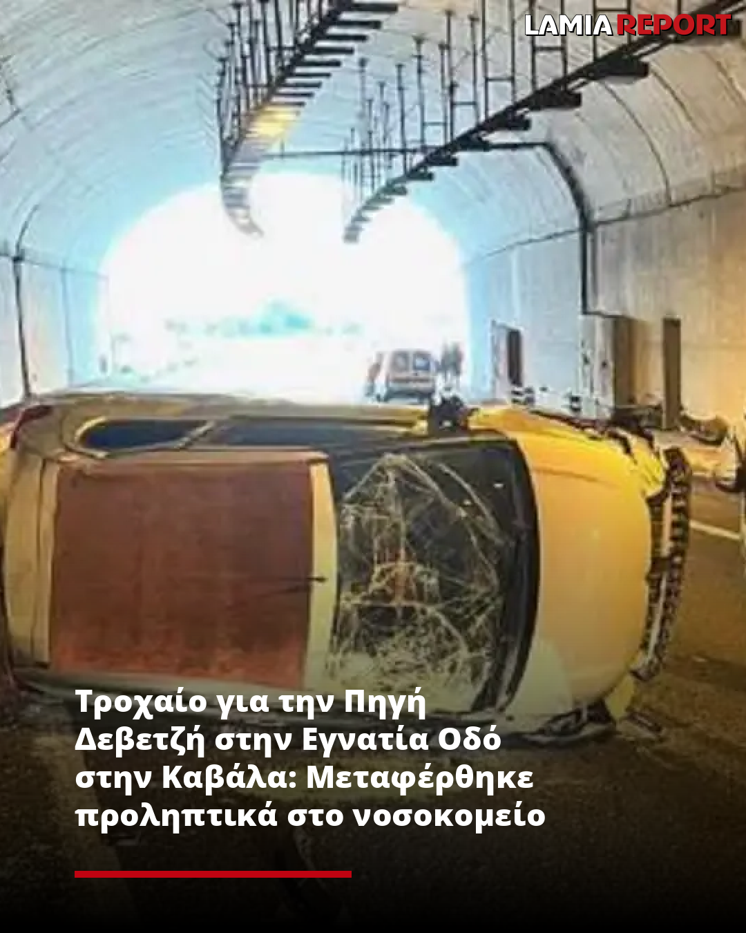Τροχαίο ατύχημα για την Πηγή Δεβετζή το μεσημέρι του Σαββάτου 6 Δεκεμβρίου σε τούνελ στην Εγνατία Οδό πάνω από το Παληό Καβάλας.