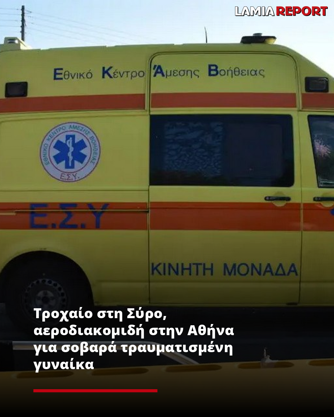 Τροχαίο στη Σύρο, αεροδιακομιδή στην Αθήνα για σοβαρά τραυματισμένη γυναίκα