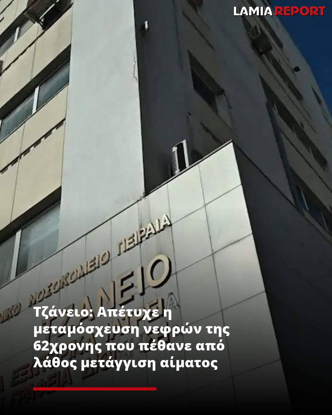 Τζάνειο: Απέτυχε η μεταμόσχευση νεφρών της 62χρονης που πέθανε από λάθος μετάγγιση αίματος