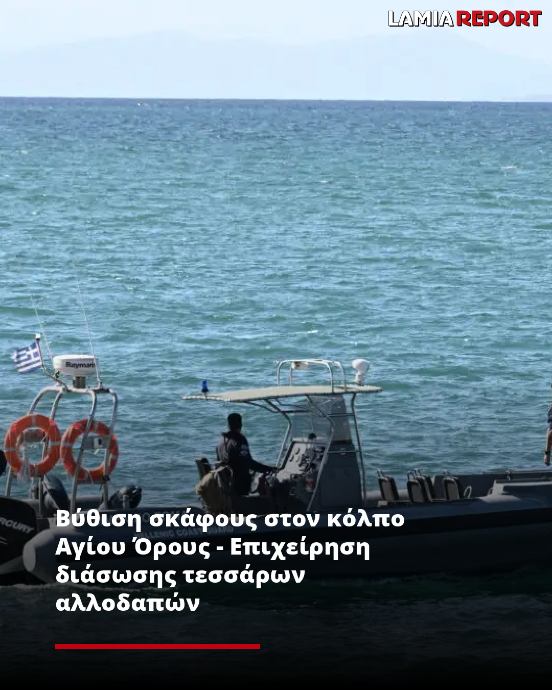 Σε εξέλιξη βρίσκεται επιχείρηση διάσωσης τεσσάρων αλλοδαπών στη θαλάσσια περιοχή του κόλπου Αγίου Όρους, μετά τη βύθιση σκάφους στο οποίο επέβαιναν.