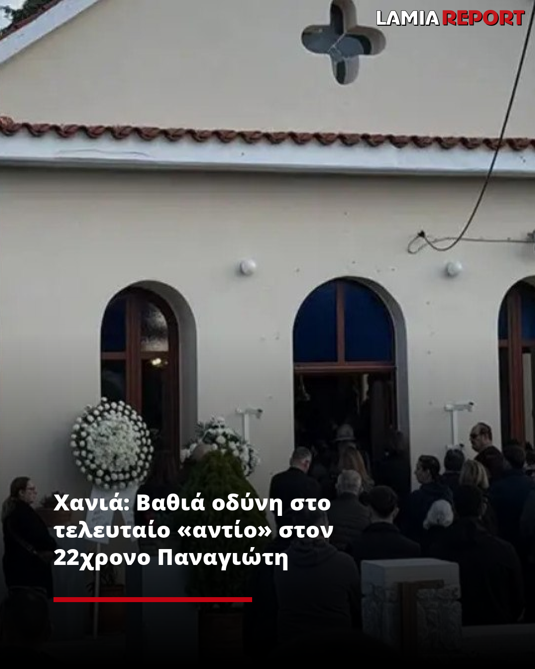 Σε κλίμα απέραντης θλίψης, φίλοι και συγγενείς λένε το τελευταίο αντίο στον 22χρονο Παναγιώτη που έχασε τη ζωή του σε τροχαίο δυστύχημα στα Χανιά.