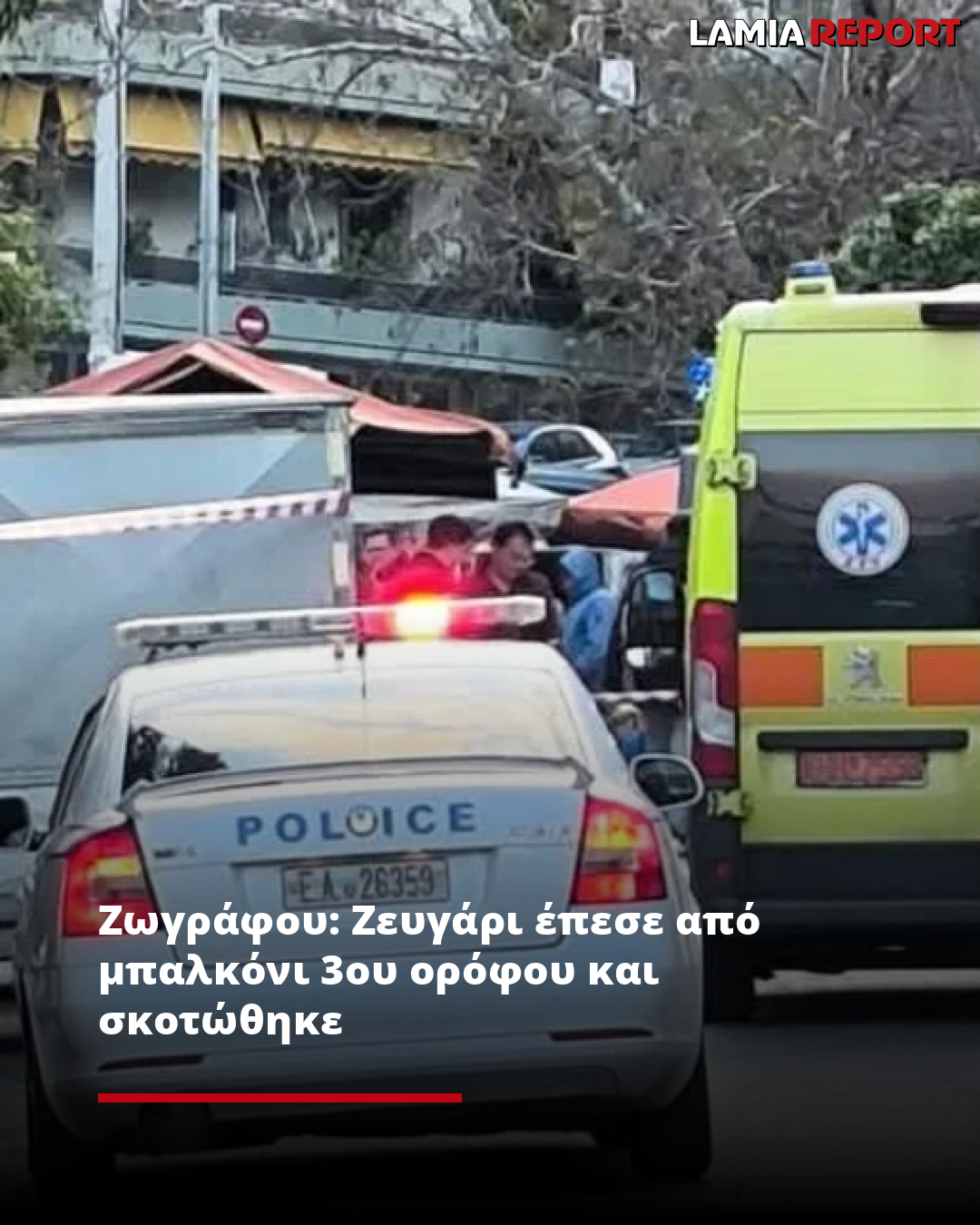 Το τραγικό δυστύχημα συνέβη στις 4 το πρωί, στην οδό Αμμοχώστου στου Ζωγράφου, όταν το ζευγάρι ηλικίας περίπου 49 χρόνων, έπεσε από το μπαλκόνι 3ου ορόφου του σπιτιού του, κάτω από αδιευκρίνιστους λόγους, σύμφωνα με πληροφορίες του newsit.gr.