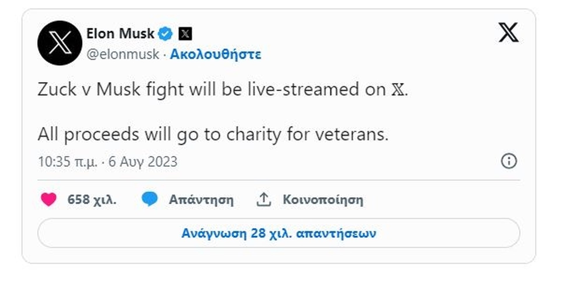 Στις 26 Αυγούστου η μονομαχία Μασκ - Ζουκερμπεργκ - Θα μεταδοθεί στην πλατφόρμα Χ