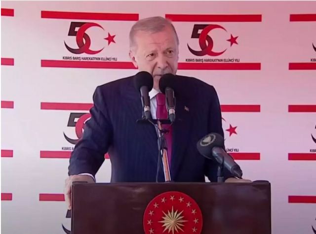 Τις πάγιες τουρκικές θέσεις στο Κυπριακό επανέλαβε ο Τούρκος πρόεδρος Ρετζέπ Ταγίπ Ερντογάν στην ομιλία του για την 50η επέτειο από την τουρκική εισβολή στην Κύπρο, το πρωί του Σαββάτου (20.7.24), υποστηρίζοντας ότι η Τουρκία είναι έτοιμη να διαπραγματευτεί, να συζητήσει και να επιτύχει μόνιμη ειρηνική λύση στην Κύπρο.