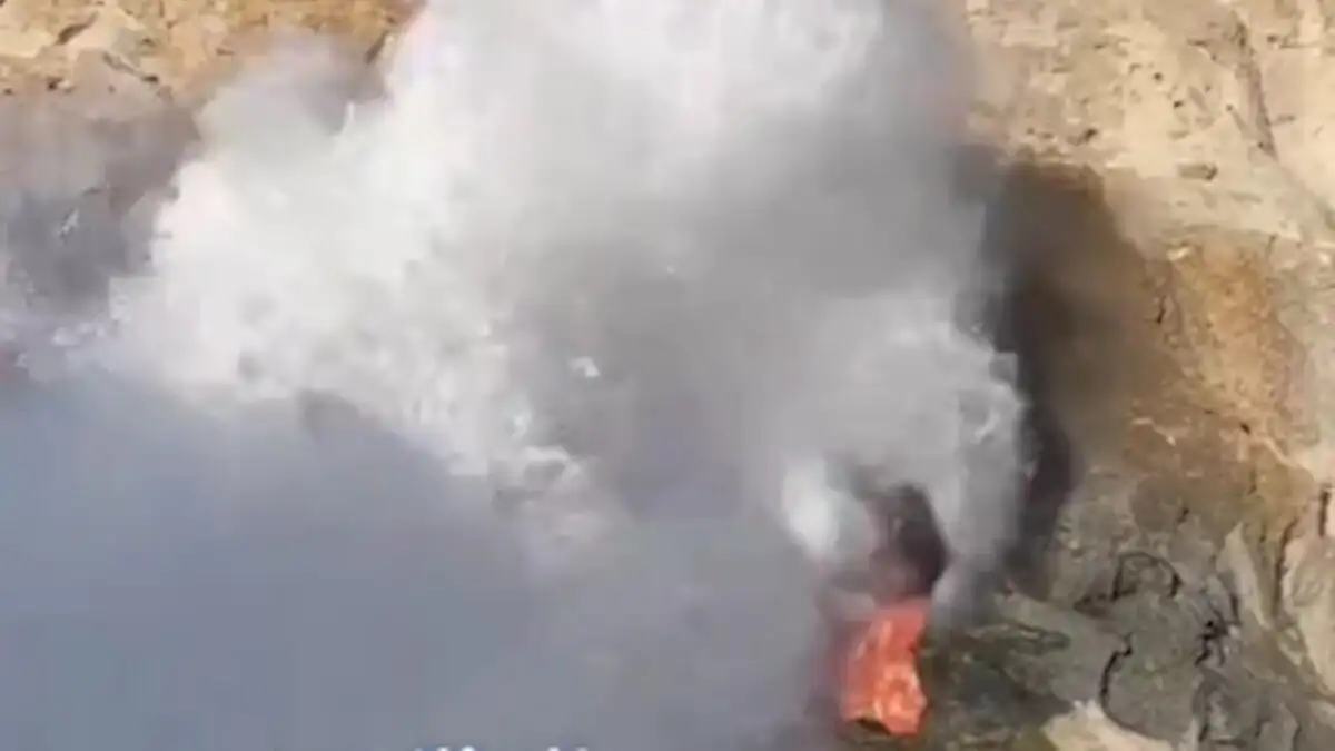 Το βίντεο από την στιγμή που την χτυπάει το κύμα, που μοιράστηκε στα μέσα κοινωνικής δικτύωσης στις 7 Δεκεμβρίου 2025, δείχνει τη γυναίκα με ένα πορτοκαλί καλοκαιρινό φόρεμα να κάθεται στη γωνία ενός βράχου κοντά στο νερό, ενώ ένα κύμα υψώνεται πίσω της.