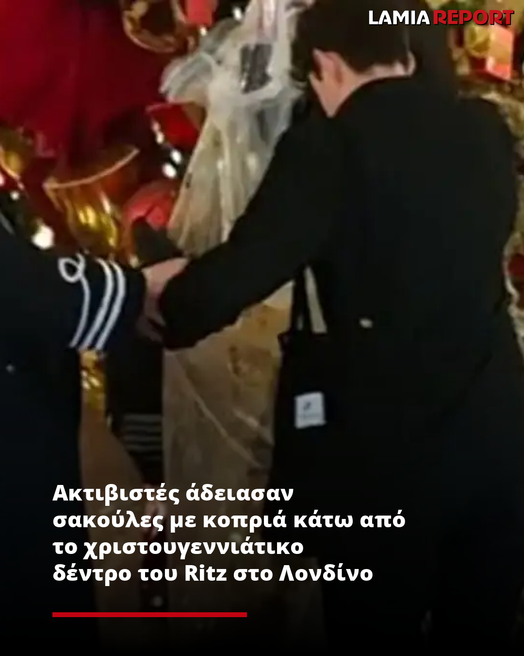 Ακτιβιστές άδειασαν σακούλες με κοπριά κάτω από το χριστουγεννιάτικο δέντρο του ξενοδοχείου Ritz στο Μέιφερ του Λονδίνου, σε μια ενέργεια-διαμαρτυρία κατά των «σκανδαλωδώς πλουσίων», πριν απομακρυνθούν βίαια από την ασφάλεια του ξενοδοχείου.