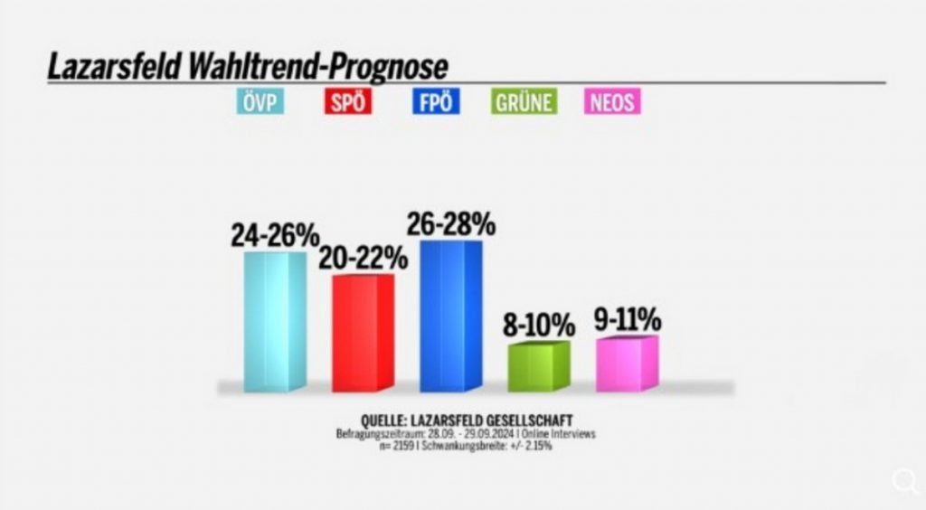 Το Κόμμα της Ελευθερίας (FPÖ), το οποίο προηγείται στις δημοσκοπήσεις από το τέλος του 2022, κέρδισε πρόσφατα και τις ευρωεκλογές, με περιοριστικές προτάσεις για το μεταναστευτικό, αμφισβήτηση της πολιτικής για την πανδημία και εγγύτητα με τον Βλαντίμιρ Πούτιν.