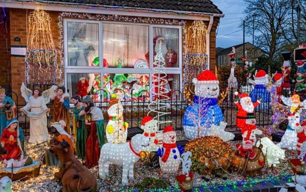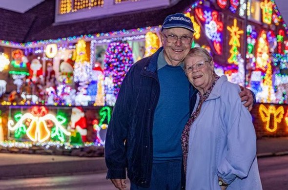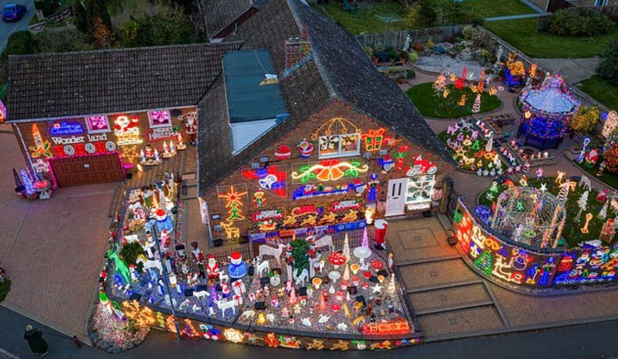 Το ζευγάρι συνταξιούχων τοποθέτησε όλα τα φωτάκια μόνο του, ενώ οικογένειες ταξιδεύουν από μακριά για να δουν το σπίτι τους, προκαλώντας συχνά κυκλοφοριακό χάος στον ήσυχο δρόμο του Κέιμπριτζσαϊρ.