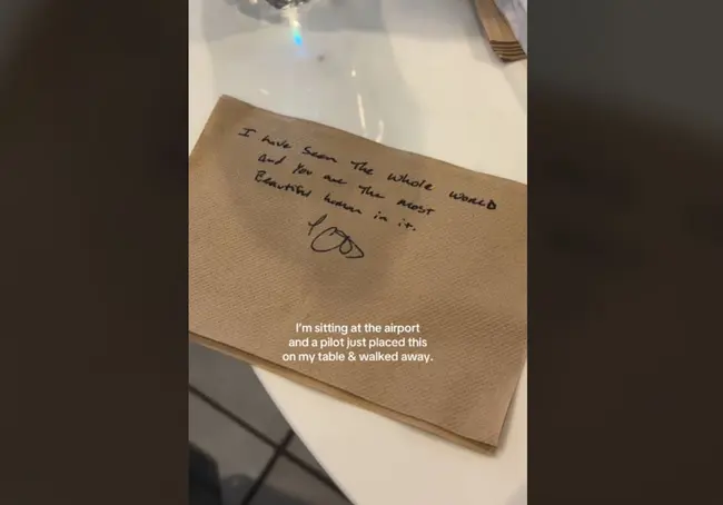 Στο αεροδρόμιο, κατά την αναμονή της για την επιβίβαση στο αεροπλάνο και όσο η νεαρή γυναίκα περίμενει σε ένα τραπέζι, έλαβε ένα σημείωμα με ερωτικό περιεχόμενο. «Καθόμουν στο αεροδρόμιο και ένας πιλότος το άφησε στο τραπέζι μου και έφυγε» δήλωσε στο βίντεο που ανέβασε.