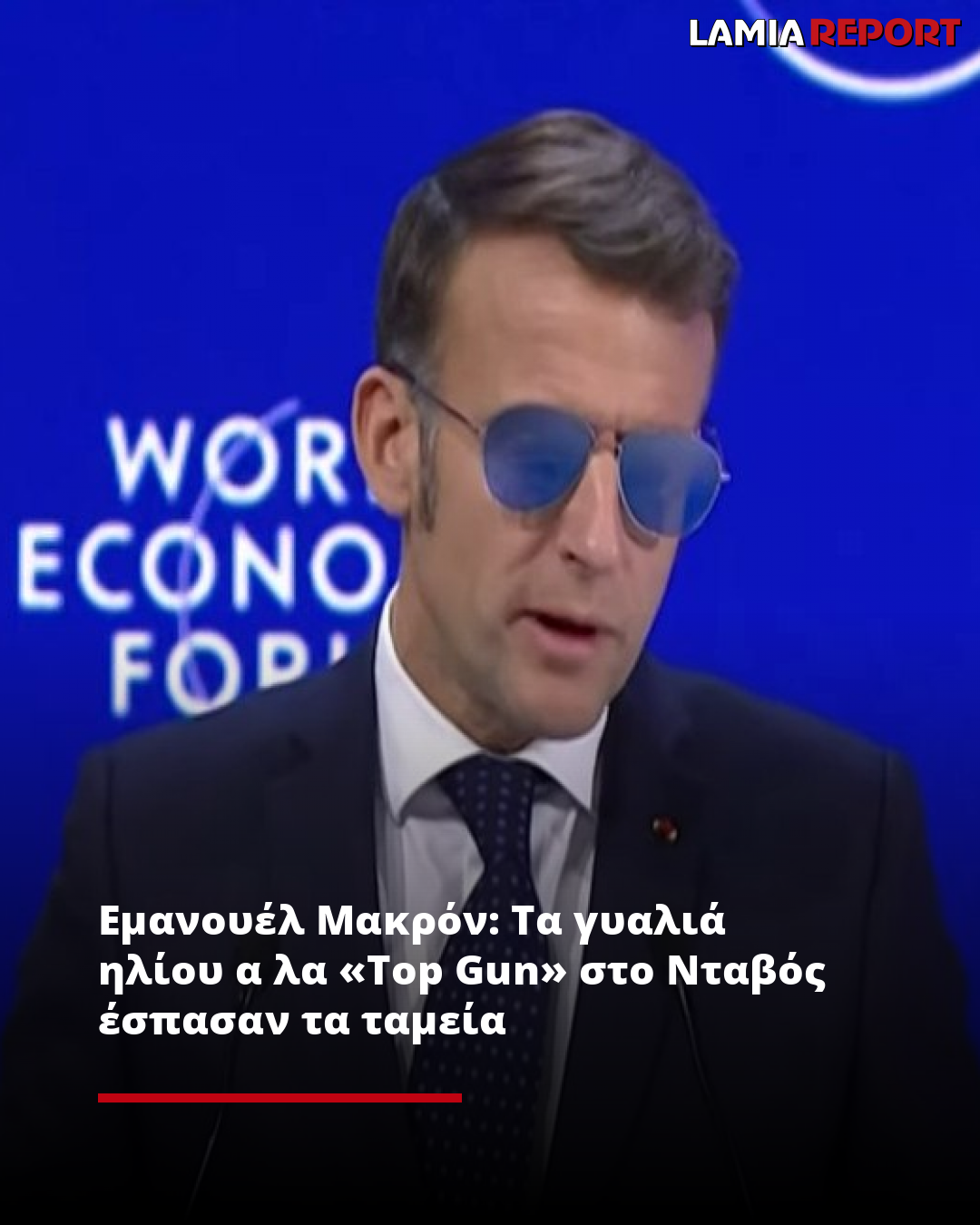 Θραύση έχει κάνει στο ίντερνετ η εμφάνιση του Γάλλου προέδρου Εμανουέλ Μακρόν με γυαλιά ηλίου που θυμίζουν Top Gun. Η παρουσία του στο Νταβός, σχολιάστηκε ποικίλως από τους χρήστες των social media, με ένα να είναι το σίγουρο ότι έχει γίνει viral.