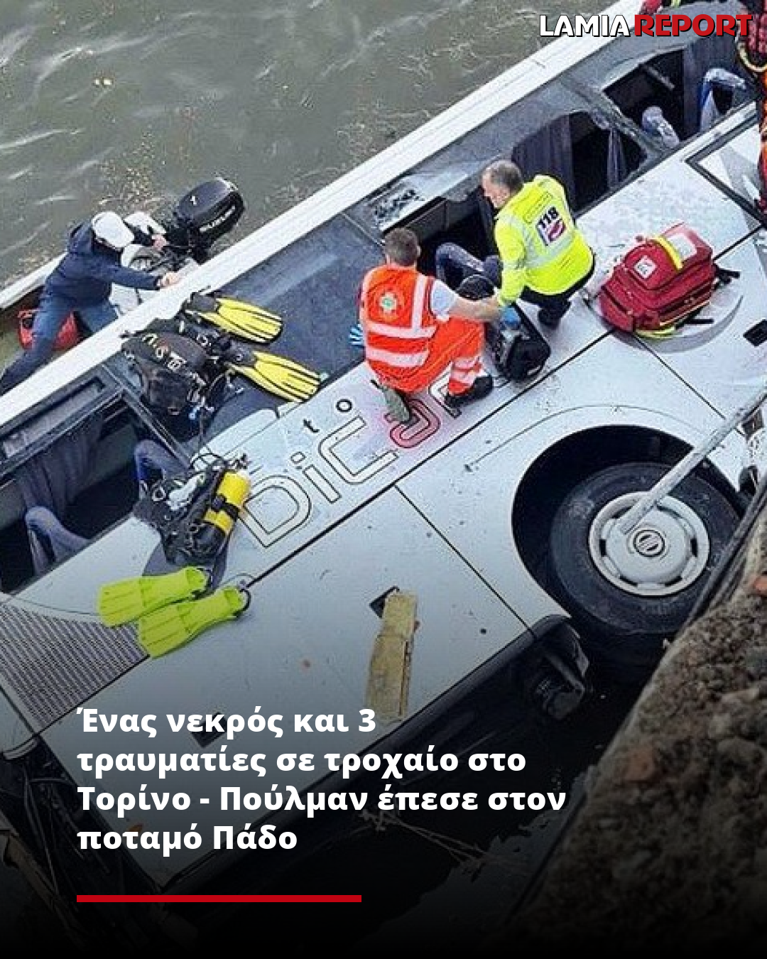 Ένας νεκρός και 3 τραυματίες σε τροχαίο στο Τορίνο - Πούλμαν έπεσε στον ποταμό Πάδο