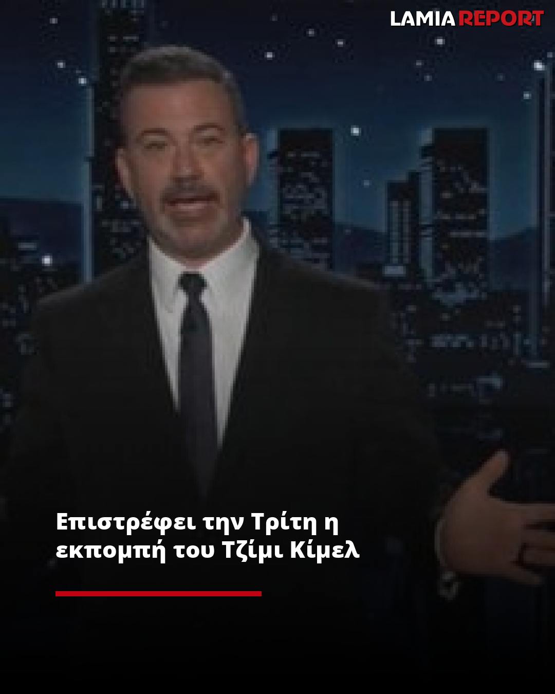 Επιστρέφει την Τρίτη, 23 Σεπτεμβρίου η εκπομπή του Τζίμι Κίμελ, το Jimmy Kimmel Live!, σύμφωνα με ανακοίνωση της Disney το βράδυ της Δευτέρας (22.09.2025).