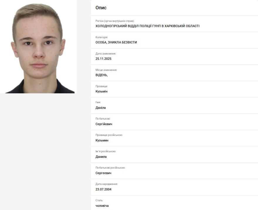 Στις 25 Νοεμβρίου 2025 η οικογένειά του έχασε ξαφνικά επαφή μαζί του και ανησύχησε, καθώς ο 21χρονος δεν συνήθιζε να μένει ασυνόδευτος. Μάλιστα, διαπίστωσαν ότι δύο ψηφιακά πορτοφόλια του με κρυπτονομίσματα είχαν αδειάσει, γεγονός που τους θορύβησε – έτσι δήλωσαν επίσημα την εξαφάνισή του στις αρχές. «Πρόκειται για μια ανθρώπινη τραγωδία», δήλωσε συγκλονισμένος ο δήμαρχος του Χαρκόβου Ίγκορ Τερέχοφ, αρνούμενος να σχολιάσει περαιτέρω καθώς το θέμα θεωρείται προσωπική υπόθεση της οικογένειας του συνεργάτη του.
