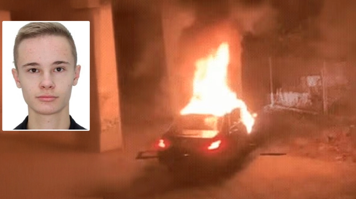 Στιγμιότυπο με την Mercedes του 21χρονου Κουζμίν στις φλόγες
