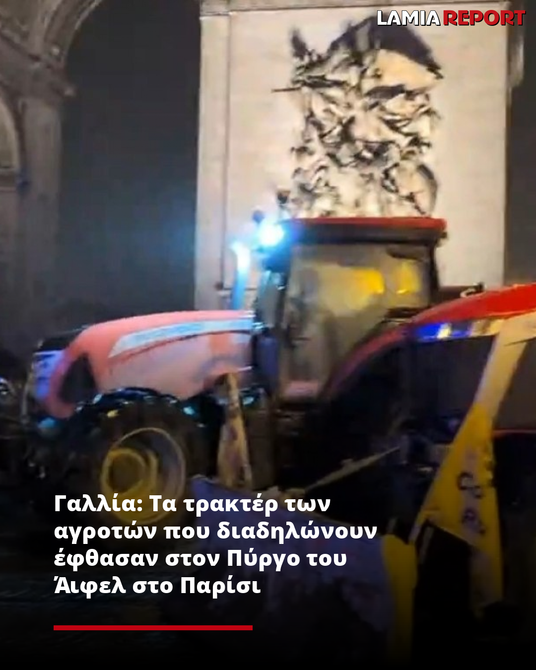 Σύμφωνα με το protothema.gr, τα τρακτέρ των αγροτών εισήλθαν σήμερα πριν από τα χαράματα στο Παρίσι και έφθασαν στον Πύργο του Άιφελ, φέρνοντας στην πρωτεύουσα την κινητοποίηση για τις διεκδικήσεις του επαγγέλματός τους, που συνεχίζεται τις τελευταίες εβδομάδες στη Γαλλία, σύμφωνα με ένα συνδικάτο και δημοσιογράφους του Γαλλικού Πρακτορείου και του Ρόιτερς που βρίσκονται επιτόπου.