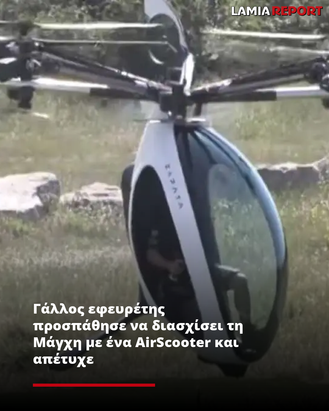 Αποτυχημένη ήταν η πρώτη προσπάθεια Γάλλου εφευρέτης να διασχίσει τη Μάγχη με ένα AirScooter, ένα ιπτάμενο όχημα που μοιάζει με μικρό ελικόπτερο, το οποίο και αναγκάστηκε να κάνει προσθαλάσσωση λόγω τεχνικού προβλήματος, λίγο πριν φτάσει στο Ντόβερ της Αγγλίας, σήμερα Παρασκευή (25.7.25).