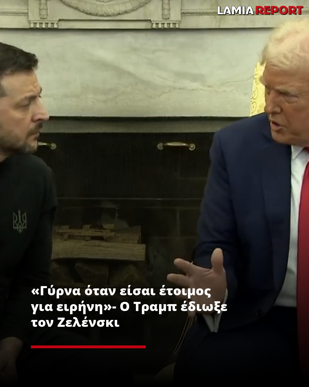 «Σου έδωσα δύναμη για να είσαι σκληρός. Δεν νομίζω ότι θα ήσουν σκληρός χωρίς τις ΗΠΑ. Ο λαός σου είναι πολύ γενναίος, αλλά είτε θα κάνεις συμφωνία είτε εμείς είμαστε εκτός. Αν βγούμε, θα το παλέψεις, αλλά δεν έχεις τα χαρτιά», είπε ευθέως στον Ζελένσκι για να του τονίσει σε άλλο σημείο: «Να γυρίσεις όταν θα είσαι έτοιμος για ειρήνη».