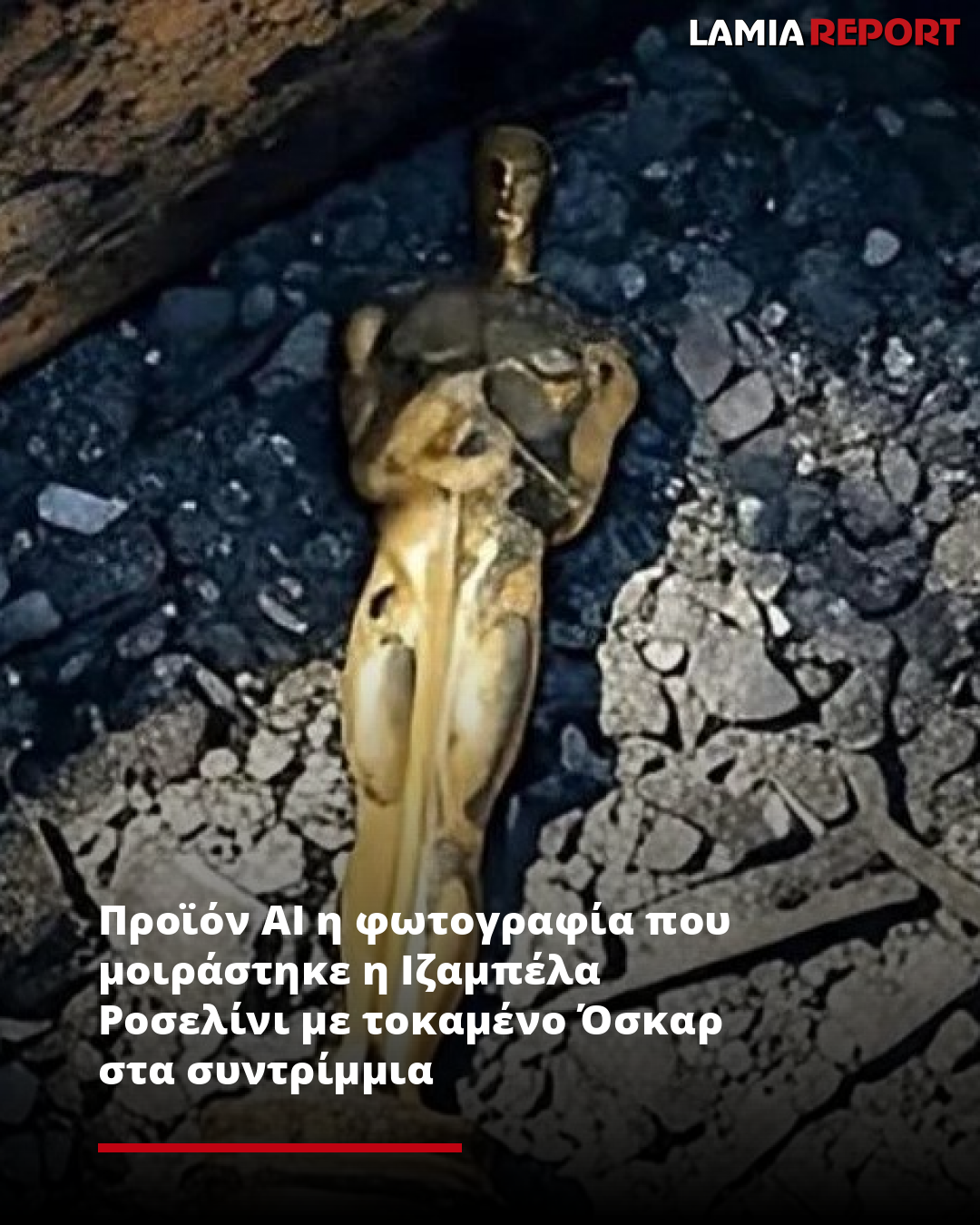 Προϊόν AI η φωτογραφία που μοιράστηκε η Ιζαμπέλα Ροσελίνι με τοκαμένο Όσκαρ στα συντρίμμια