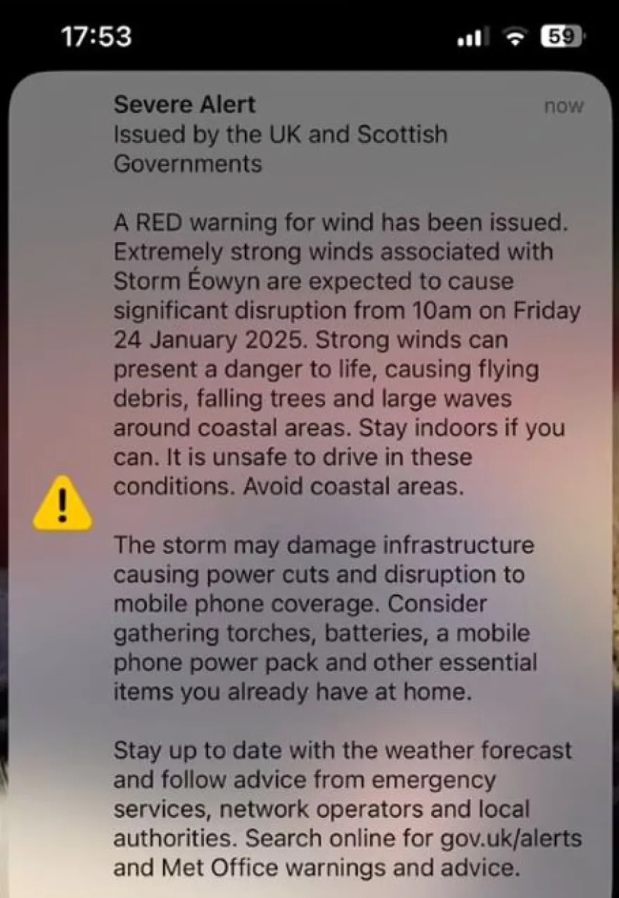 Σε κατάσταση συναγερμού βρίσκονται αρχές και κάτοικοι μεγάλων περιοχών της Μεγάλης Βρετανίας λόγω της κακοκαιρίας Eowyn με σχεδόν 4,5 εκατομμύρια άτομα να λαμβάνουν το βράδυ της Πέμπτης (23/1/2025) μήνυμα για λήψη μέτρων προστασίας και κίνδυνο ζωής.