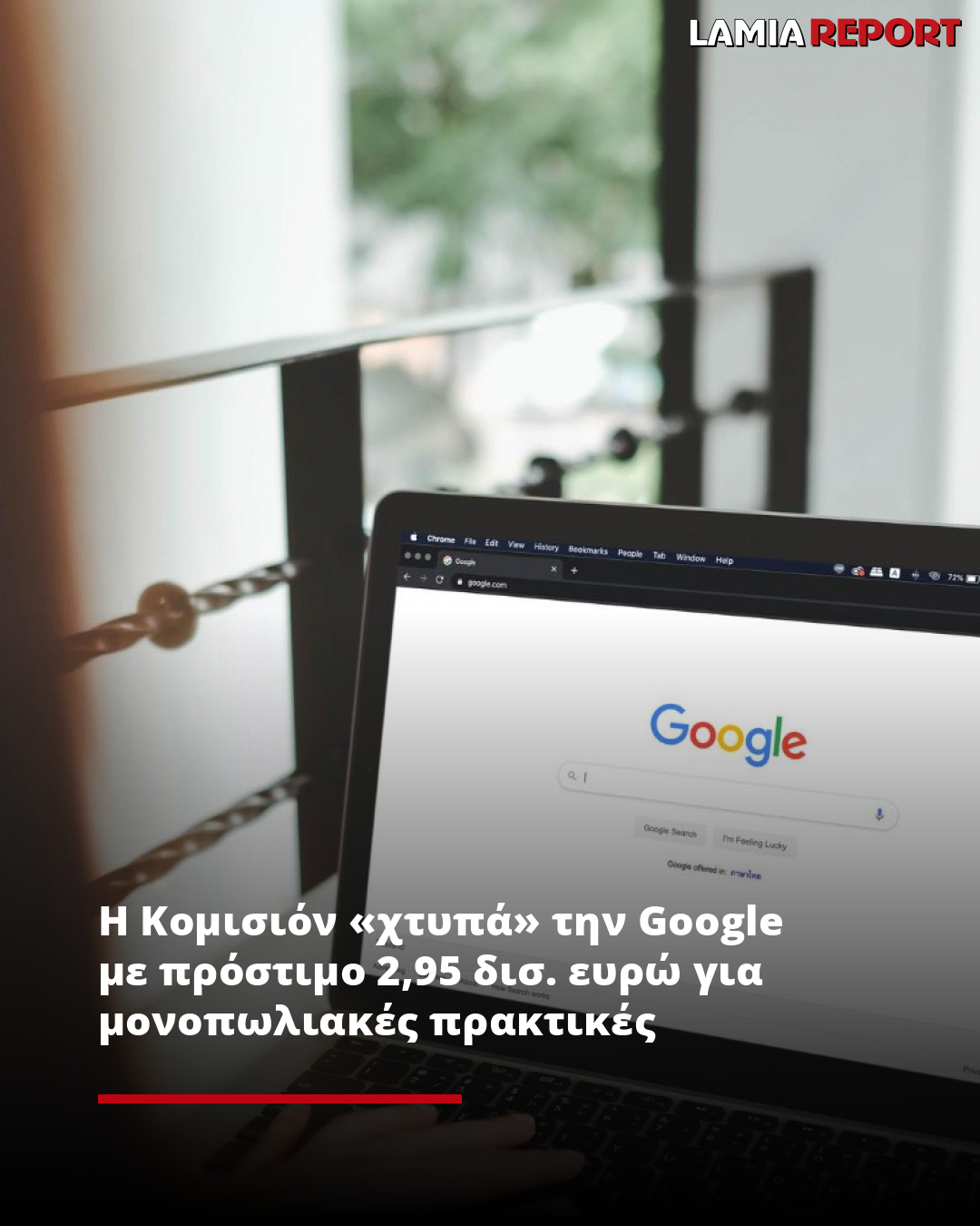 Πρόστιμο 2,95 δισ. ευρώ επέβαλε σήμερα (5.9.25) η Κομισιόν στην Google για κατάχρηση δεσπόζουσας θέσης στην αγορά διαφημιστικής τεχνολογίας. Η εταιρεία κατηγορείται ότι ευνοούσε τις δικές της διαφημιστικές υπηρεσίες εις βάρος των ανταγωνιστών, παραβιάζοντας τους κανόνες ανταγωνισμού της ΕΕ.