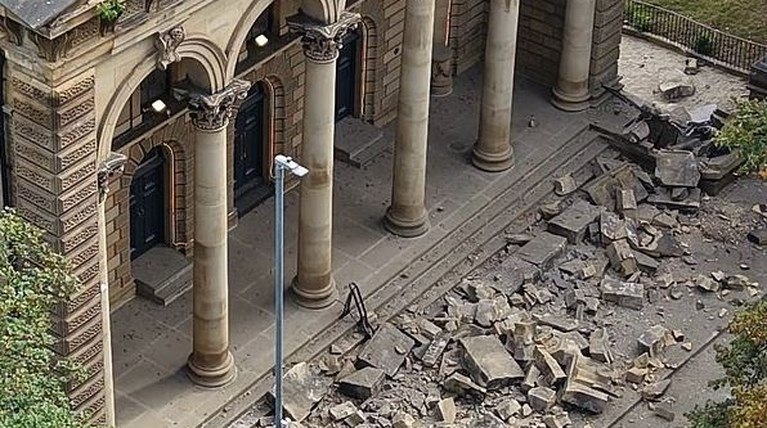 Αναστάτωση επικράτησε το πρωί του Σαββάτου στο Κλέκχιτον του Δυτικού Γιορκσάιρ στη Βρετανία, όταν η πρόσοψη ενός βικτωριανού ναού ξαφνικά κατέρρευσε.