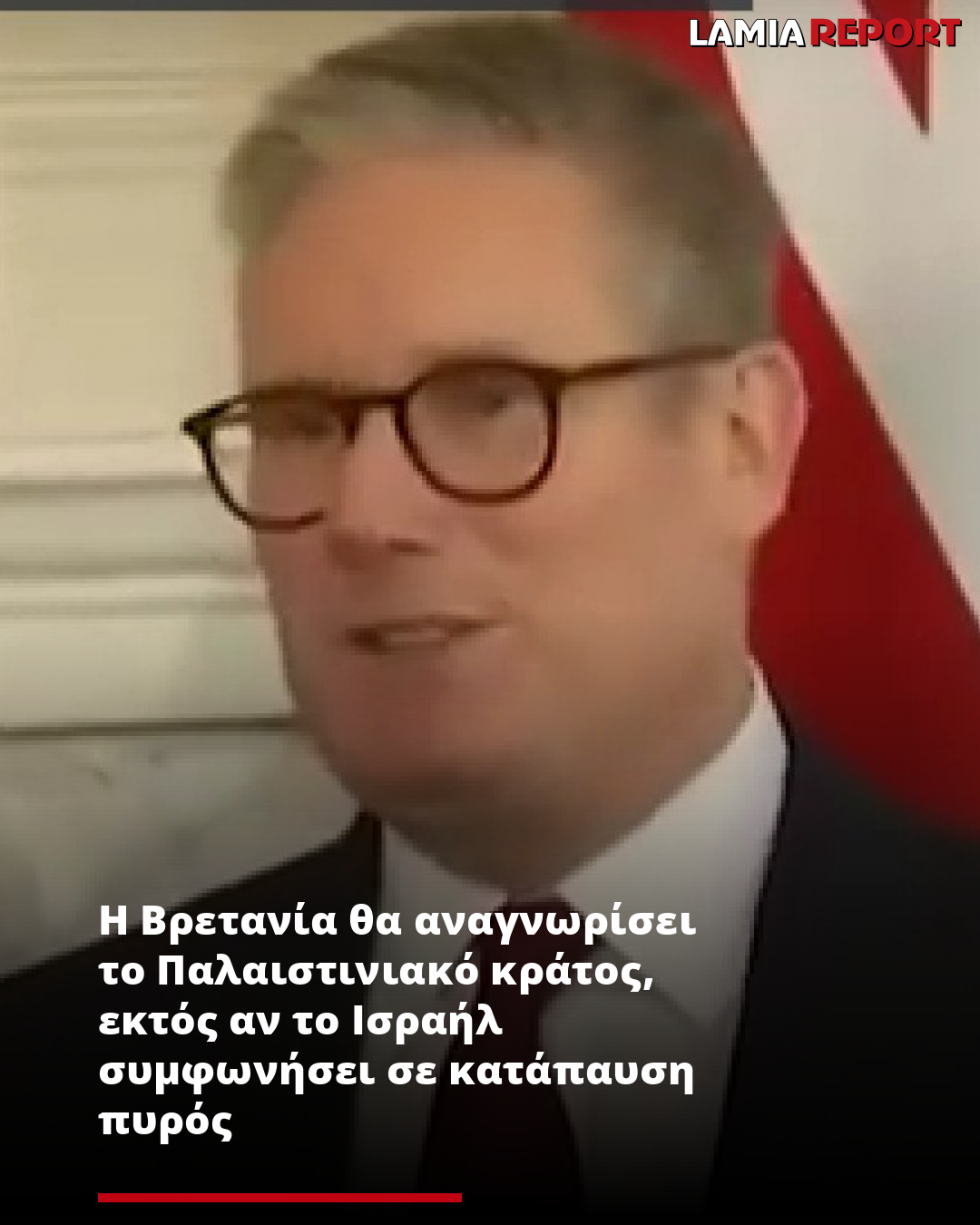 Δια στόματος Κιρ Στάρμερ έγινε γνωστό ότι η Βρετανία θα αναγνωρίσει το Παλαιστινιακό κράτος, εκτός αν το Ισραήλ συμφωνήσει σε κατάπαυση πυρός.