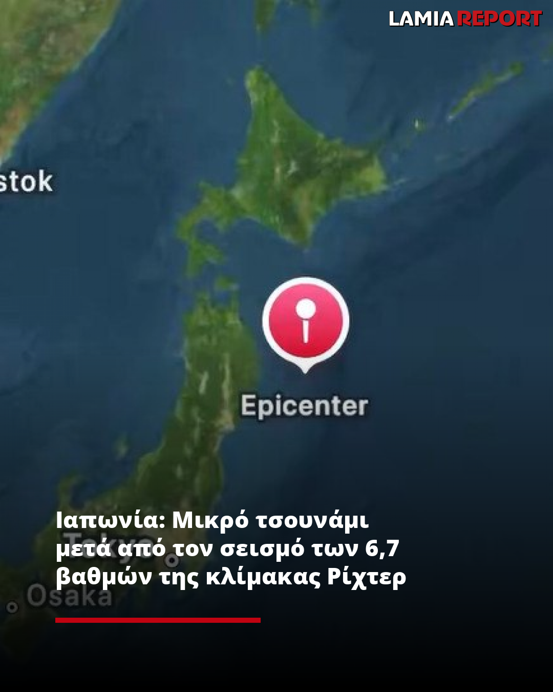 Η Μετεωρολογική Υπηρεσία της Ιαπωνίας (JMA) ανακοίνωσε ότι ένα μικρό τσουνάμι έπληξε σήμερα τη βόρεια ακτή της χώρας στον Ειρηνικό ύστερα από σεισμό 6,7 βαθμών που σημειώθηκε στα ανοιχτά της.