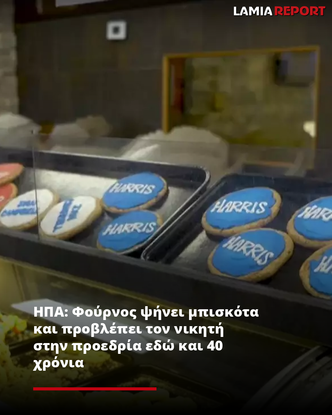 Εδώ και 40 χρόνια, ένας φούρνος στα προάστια του Ντιτρόιτ των ΗΠΑ προβλέπει τον νικητή των προεδρικών εκλογών βάζοντας τους πελάτες να «ψηφίζουν» αγοράζοντας τα αντίστοιχα μπισκότα με βάση τις πολιτικές τους πεποιθήσεις. Τα κόκκινα μπισκότα φέρουν το όνομα του πρώην Αμερικανού προέδρου Ντόναλντ Τραμπ ενώ τα μπλε έχουν γραμμένο το όνομα Κάμαλα Χάρις.