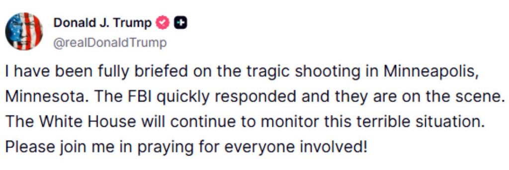 Ο Αμερικανός πρόεδρος Ντόναλντ Τραμπ δήλωσε ότι έχει «ενημερωθεί διεξοδικά» για την «τραγική» επίθεση με πυροβολισμούς σε σχολείο στη Μινεάπολη της Μινεσότα.