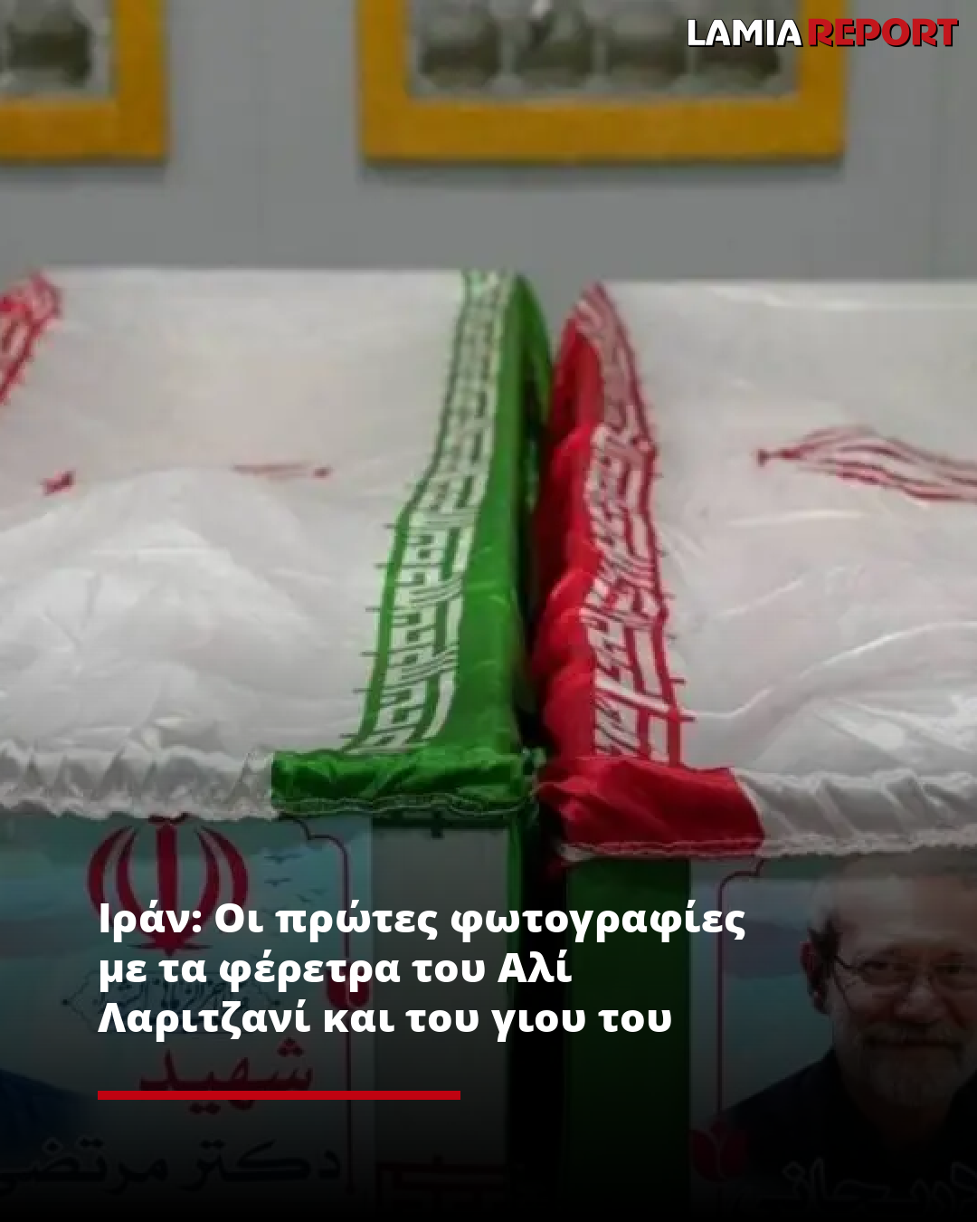 Οι πρώτες φωτογραφίες από τα φέρετρα του ο επικεφαλής των υπηρεσιών ασφαλείας του Ιράν, Αλί Λαριτζανί και του γιου του, που σκοτώθηκαν κατά τη διάρκεια ισραηλινής επίθεσης, κάνουν τον γύρο του διαδικτύου σήμερα Τετάρτη (18.3.26).
