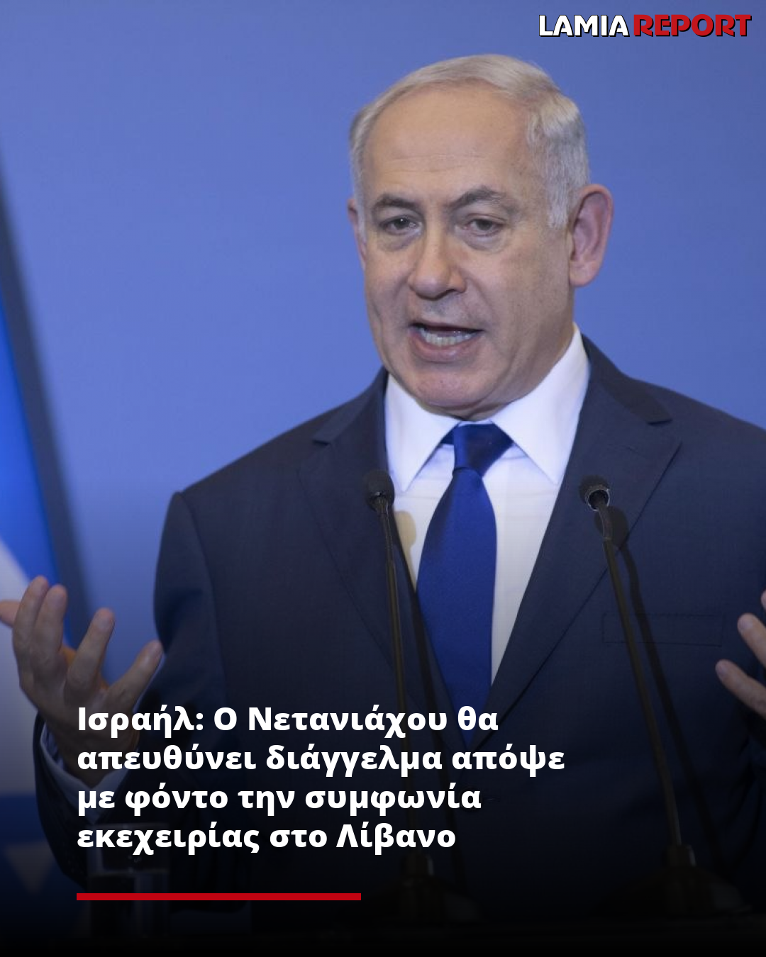 Το διάγγελμα του Νετανιάχου θα έρθει μετά τη συνεδρίαση του ισραηλινού υπουργικού συμβουλίου ασφαλείας για την έγκριση συμφωνίας για κατάπαυση του πυρός στον πόλεμο μεταξύ Ισραήλ και Χεζμπολάχ στον Λίβανο, διάρκειας 60 ημερών.