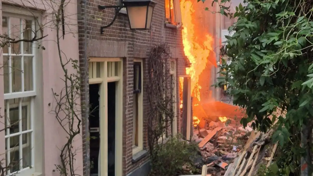 Η έκρηξη προκάλεσε μεγάλη φωτιά σε έναν ιστορικό, στενό δρόμο στην Ουτρέχτη, ο οποίος είναι γεμάτος παλαιότερα μονοκατοικίες.