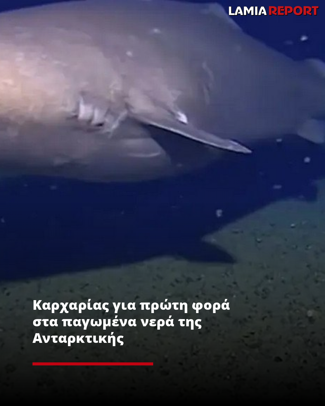 Το βίντεο δείχνει έναν μεγάλο καρχαρία να κινείται αργά στα βαθιά νερά της Ανταρκτικής. Το υλικό καταγράφηκε τον Ιανουάριο του 2025 και, σύμφωνα με τον ερευνητή Άλαν Τζέιμσον, το ψάρι είχε μήκος περίπου 3 έως 4 μέτρα.