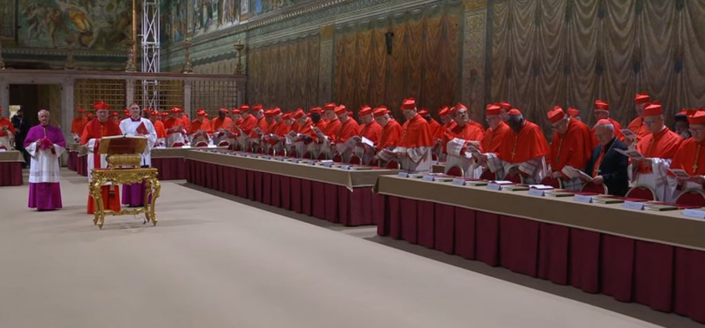Καρδινάλιοι από όλο τον κόσμο, κάτω των 80 ετών, οι οποίοι συμμετέχουν στο κονκλάβιο μεταβαίνουν από το παρεκκλήσι Παολίνα στην Καπέλα Σιξτίνα. Εκεί όπου καλούνται να εκλέξουν τον νέο Πάπα. Δέκα λεπτά μετά την άφιξή τους, οι πύλες κλείνουν, προκειμένου να ξεκινήσει η πρώτη ψηφοφορία.