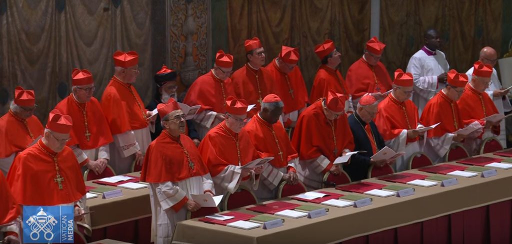 Νωρίτερα σήμερα, οι 133 εκλέκτορες καρδινάλιοι βρέθηκαν στην Βασιλική του Αγίου Πέτρου, όπου τελέστηκε η λειτουργία pro eligendo pontifice, υπέρ της εκλογής του νέου ποντίφικα.